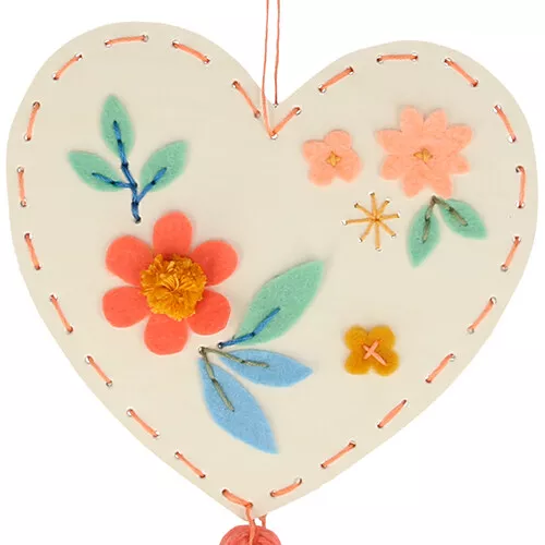 Als handwerkje op een zonnige of druilerige dag is deze borduurset ‘Heart Embroidery Kit’ van het merk Meri Meri een schot in de roos. Een decoratief handwerkje in een luxe verpakking. Een gezellige activiteit voor kinderen om zelfstandig of samen met een volwassenen te doen. Na het knutselen een lieflijke decoratie in huis.