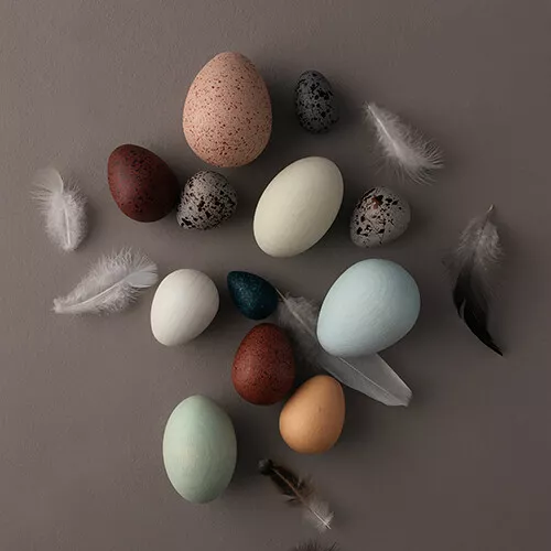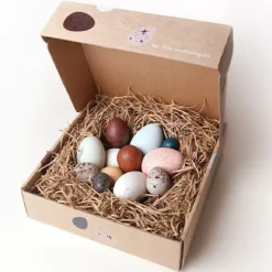 De vogeleieren zijn met de hand beschilderd in Duitsland. Het speelgoed is ontworpen om te helpen bij het leren door middel van tactiel en zintuiglijk spel en nodigt uit tot een praatje over vogels en eieren.