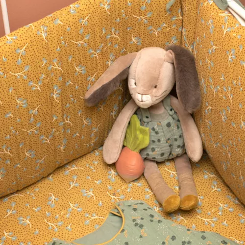 Dit zachte, grappige knuffelkonijn uit de collectie ‘Trois Petits Lapins’ van het Franse merk Moulin Roty is een aanhankelijk kameraadje.