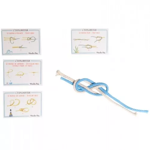 Leer knopen leggen als een echte zeeman met deze set zeemansknopen ‘Les Noeuds’ van het Franse merk Moulin Roty. Educatief speelgoed voor kleine ontdekkingsreizigers.