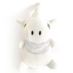 Deze handgemaakte, gebreide eenhoorn ‘Pearl’ van het Portugese merk Mrs Ertha is een knuffel en rammelaar in één.
