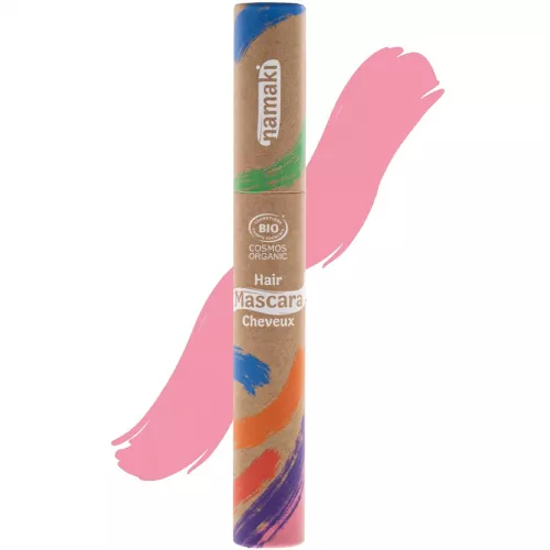 Tijdelijk een roze kleurtje in het haar? Dat kan veilig met de natuurlijke haarmascara van het Franse merk Namaki. De haarkleuring is eenvoudig weer uit te wassen met shampoo.