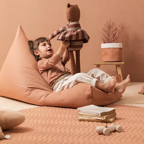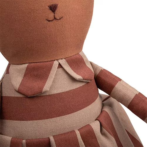 De knuffelbeer ‘Majestic Marsala’ van het Spaanse merk Nobodinoz is een trouwe vriendin om te omarmen en te knuffelen. De knuffelbeer heeft een geborduurde snoet en heeft een gestreepte pakje met rokje van twill katoen. Deze bolle berenknuffel is aan haar lange armen en benen gemakkelijk vast te pakken.