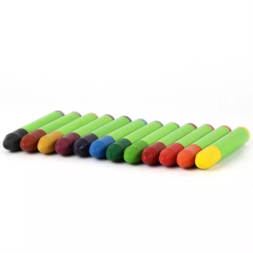 De krijtjes zijn omwikkeld met papier. Dit houdt de handen schoon.