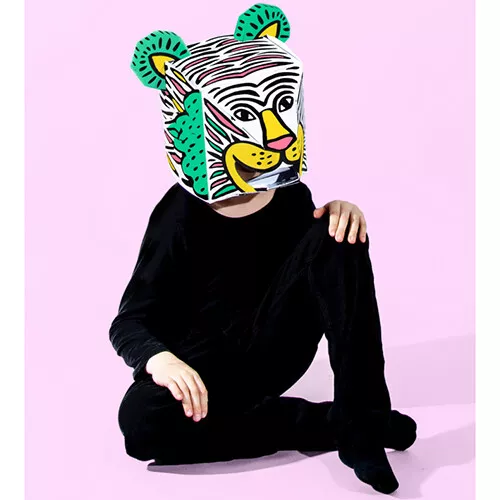 Tover jezelf om tot kleurrijke tijger met dit inkleurbare 3D masker ‘Tiga’ van het Franse merk Omy en maak de buurt onveilig.