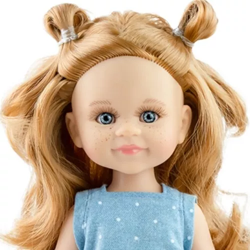 Stapop Cleo uit de Amigas serie van het Spaanse merk Paola Reina is een kleine meisjespop met gekrulde wimpers, speelse sproetjes, honingblond haar en prachtige sprekende, blauwgrijze ogen.