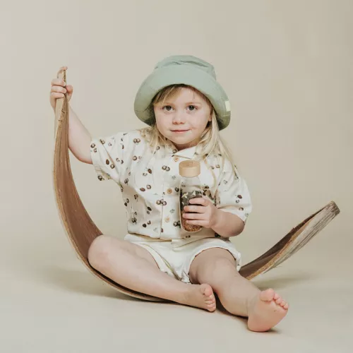 Kleur, geluid en magie komen samen in de sensorische fles ‘Sound Bottle Monkey’ van het Spaanse merk Petit Boum. Beweeg de betoverende fles heen en weer en zie het aapje bewegen. Zou het aap lukken om bij de bananen te komen?