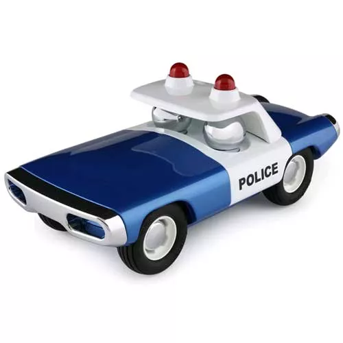 Deze stoere politieauto van het design-speelgoedmerk Playforever is een echte eyecatcher! De speelgoedauto is geïnspireerd door New York in de jaren ’60, toen de Maverick de spotlights veroverde! De auto is blauw en wit van kleur en heeft zilveren accenten, waaronder de bestuurders.