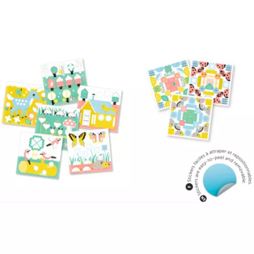 Creatief en educatief speelgoed waamee peuters kleuren en vormen leren waar te nemen en trainen ze de fijne motoriek. Door de stickers op de kaarten te plaatsen komen ze in de belevingswereld van het bos met de lieveheerstbeestjes, eekhoorns, mussen, egels en vlinders.