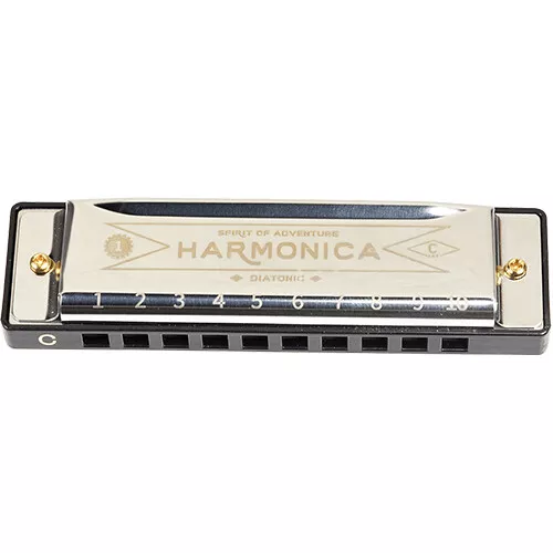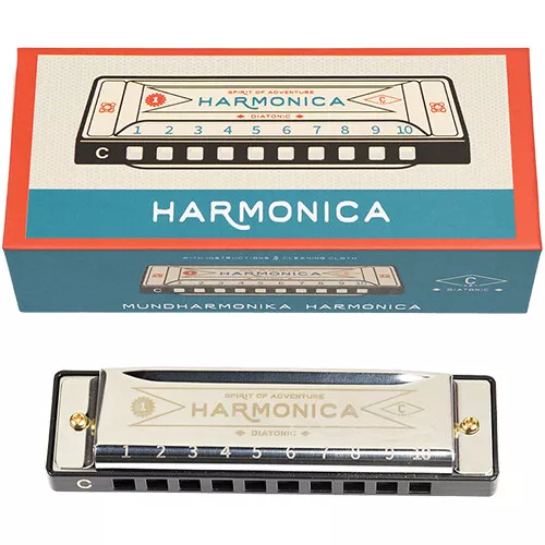 Een mondharmonica voor beginners. De set bevat instructies en een schoonmaakdoekje.