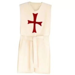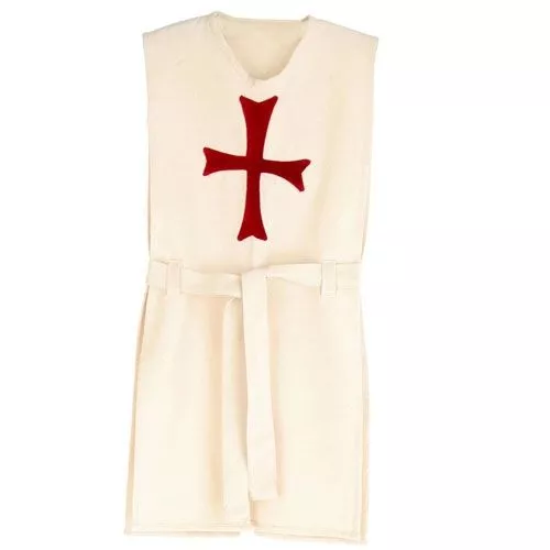 De tuniek is van stevig katoen met het rode kruisembleem van de tempeliers. De zijnaden zijn op en blijven bijeen met een ceintuur.