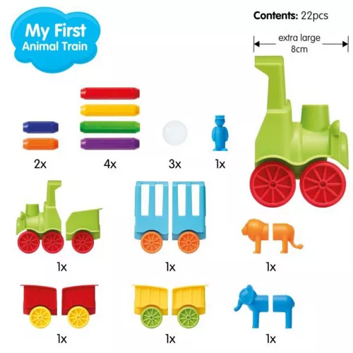 Bouw een trein voor de dieren met de magnetische puzzelstukken van ‘My First Animal Train’ van het merk SmartMax. Fascinerend speelgoed voor jonge kinderen.