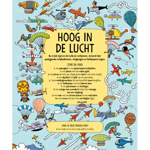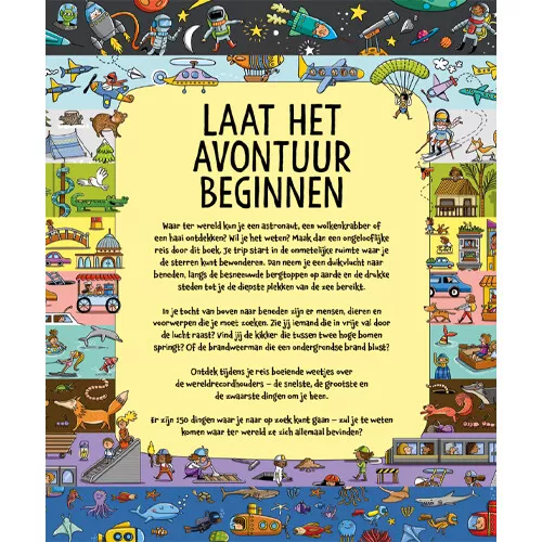 Beginnend met de ruimte, naar bergen en steden om uiteindelijk onder de zee te belanden, zit dit educatieve zoek- en vindboek vol met dingen die je kunt spotten en leuke feiten om te ontdekken.