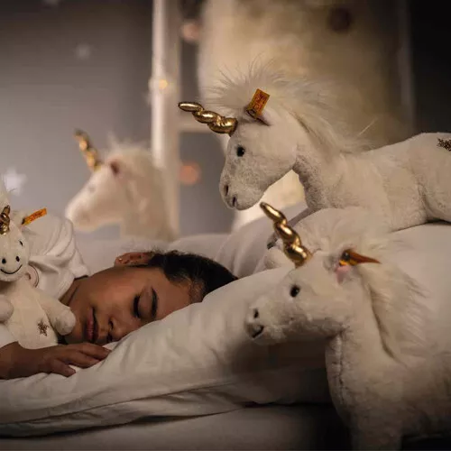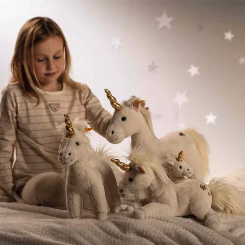 ‘Soft Cuddly Friends Unica Dangling’ is een liggende knuffeleenhoorn van het Duitse merk Steiff. Met haar sierlijke manen en staart van lang pluche, glanzende hoorn en lieve kraalogen, is zij hartveroverend en spreekt zij tot de verbeelding van kinderen.
