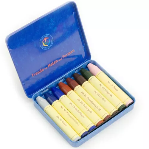 De wasstiftjes van het merk Stockmar onderscheiden zich door te voldoen aan de hoogste pedagogische, esthetische en kunstzinnige kwaliteitsnormen. Dit blikken doosje bestaat uit acht verschillende kleuren en zijn een goede aanvulling op primaire en secundaire kleuren.
