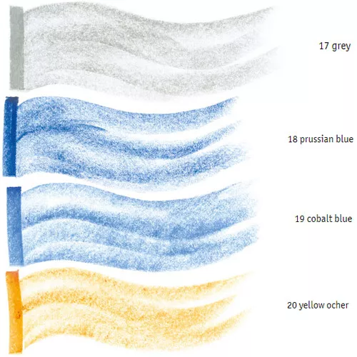 De waskrijtjes zijn van hoogwaardige kwaliteit en hebben een bijzondere lichtintensiteit. Door de toevoeging van bijenwas en lichtechte pigmenten zijn ze ook voor professioneel gebruik ideaal. Daarnaast kunnen ze op veel soorten materiaal gebruikt worden, wat ze geschikt maakt voor bijzondere tekentechnieken.