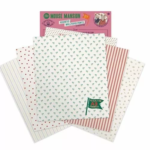 Een set van zes knutselvellen ‘Mouse Mansion knipvellen Behang’ van het Nederlandse merk Studio Schaapman. Met dit DIY knutselpakket gebaseerd op de Muizenhuis kinderboeken van Karina Schaapman kunnen kinderen hun eigen muizen- of poppenhuis prachtig behangen.
