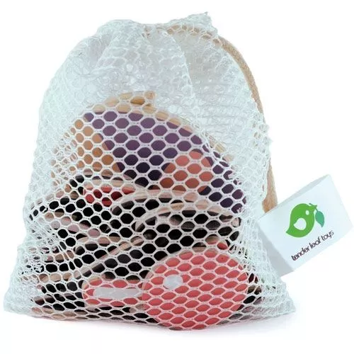 Inclusief handige netzak met trekkoord om de houten onderdelen in op te bergen.