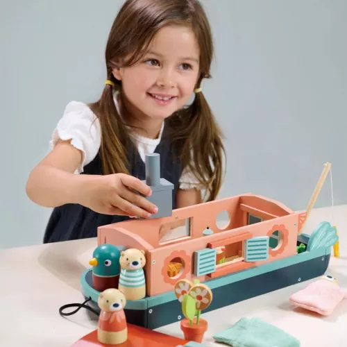 Otters leven op het water en zo ook deze familie. Hun woonboot ‘Little Otter Canal Boat’ van het Engelse merk Tender Leaf Toys vormt een knus huis voor moeder Suzy, vader Skipper en hun kleintje Smudge.