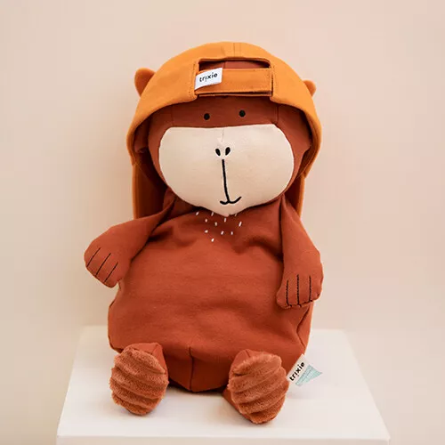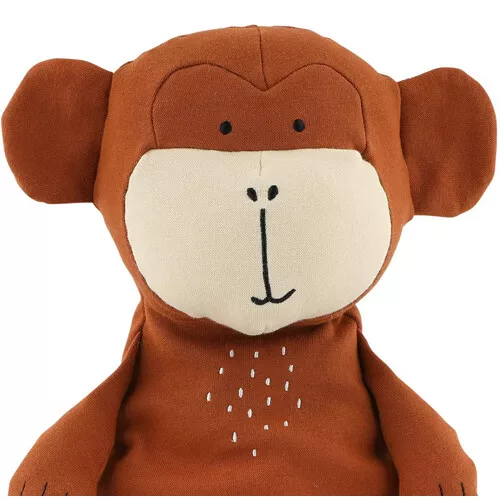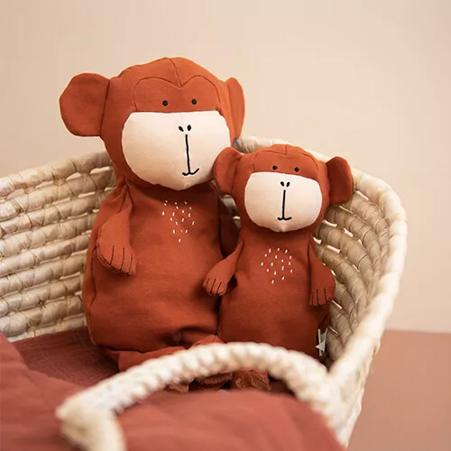 Deze nieuwsgierige knuffelaap Mr. Monkey van het Belgische merk Trixie vraagt om een omhelzing. De katoenen apenknuffel heeft een geborduurde snuit, grote oren en een staartje. Zijn achterpootjes en staartje zijn van corduroy, wat fijn aanvoelt.