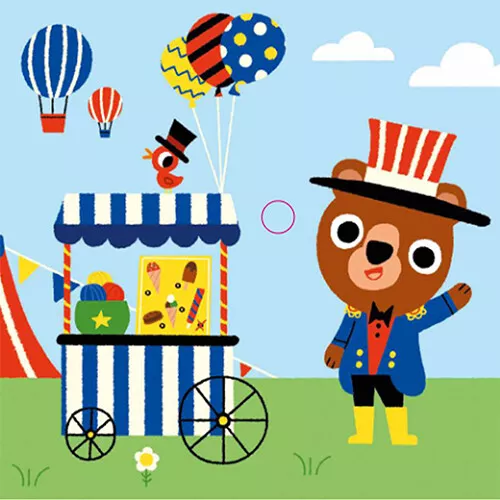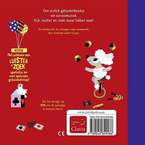 Een eerste kennismaking met beestachtig leuke circusartiesten, in beeld en geluid met dit mooie geluidenboekje ‘Circusmuziek’ van Marion Billet.