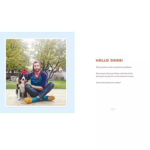 In ‘Zoek Momo’ reizen Bordercollie Momo en zijn baasje Andrew door Amerika. Momo is héél goed in verstoppertje spelen. Op elke foto in dit boek wacht Momo geduldig tot je hem gevonden hebt. Zoek je mee?