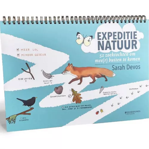 Ik zoek, ik zoek… Iets plakkerigs! Iets prikkelends! Iets groens! Of misschien wel een spoor? Met dit kinderboek ‘Expeditie Natuur’ van Sarah Devos met 52 zoektochten trek je er elke week van het jaar op uit in het groen.
