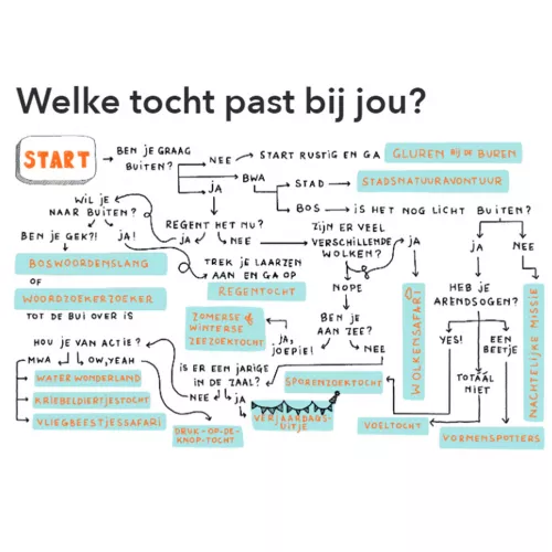 Ga samen op sporensafari, zoek gruwelijk vieze dingen tijdens de jakkiebakkietocht of organiseer een druk-op-de-knoptocht.