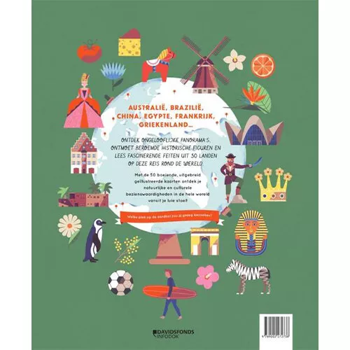 Australië, Brazilië, China, Egypte, Frankrijk, Griekenland… In dit leerzame kinderboek ‘Onze wonderlijke wereld’ van Kalya Ryan en Ben Handicott ontdekken kinderen ongelooflijke panorama’s, ontmoet beroemde historische figuren en lees fascinerende feiten uit 50 landen. Met de 50 boeiende, uitgebreid geïllustreerde kaarten om natuurlijke en culturele bezienswaardigheden in de hele wereld te verkennen vanuit je luie stoel! Welke plek op de aardbol zou jij graag bezoeken?