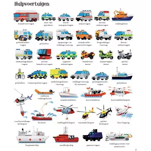 Een reddingshelikopter is toch weer ietsje anders dan een vuurbestrijdingshelicopter. En er bestaat ook nog een blusvliegtuig! In dit boek met ‘1001 voertuigen’ van uitgeverij Deltas staan héél veel voertuigen bij elkaar, van hulpvoertuigen tot gevechtsvliegtuigen.