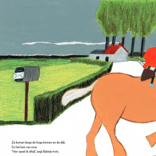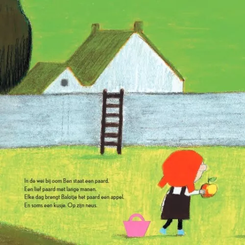 In het prentenboek ‘Balotje en het paard’ van Yvonne Jagtenberg neemt Balotje een paard mee uit wandelen. Of gaat het paard misschien met haar aan de wandel?