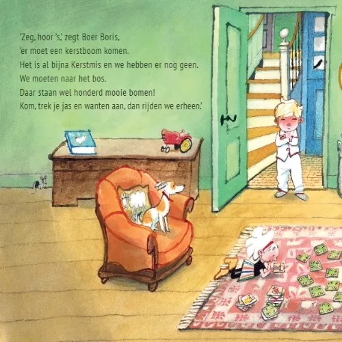 Samen met Berend en Sam heeft Boer Boris een joekel van een kerstboom uitgegraven in het bos. De boom staat mooi versierd buiten op het erf en alle dieren komen kijken. Behalve het oude varken… Dat blijkt van ouderdom stilletjes te zijn gestorven. Boris organiseert een mooie begrafenis in het bos. En als ze terugkomen in de stal krijgt kerst toch nog een mooi staartje…