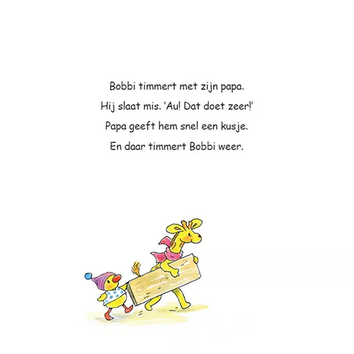 In dit peuterboekje ‘Bobbi – De allerliefste papa’ van Monica Maas gaat beertje Bobbi samen met zijn vader op stap. Ze gaan samen boodschappen doen, timmeren en naar de kapper. De lieve verhaaltjes uit de populaire serie prentenboeken over Bobbi zijn op rijm geschreven.
