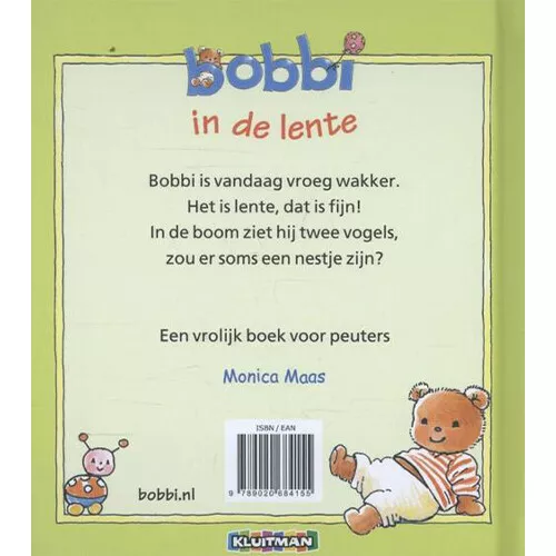 In dit peuterboekje ‘Bobbi in de lente’ van Monica Maas geniet beertje Bobbi van de lente; hij ziet vogels een nestje bouwen, fietst naar de lammetjes in de wei, telt de nieuwe kuikentjes en blaast samen met Ollie de pluisjes van de paardenbloemen. De lieve verhaaltjes uit de populaire serie prentenboeken over Bobbi zijn op rijm geschreven.