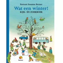Dit plaatjes-kijk-boek ‘Wat een winter’ van uitgeverij Lannoo, door Rotraut Susanne Berner, is een stevig kartonboek op groot formaat.