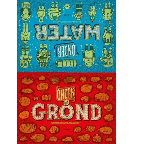Draai je het kinderboek ‘Onder de grond’ van uitgeverij Lannoo om, dan zie je ‘Onder Water’.