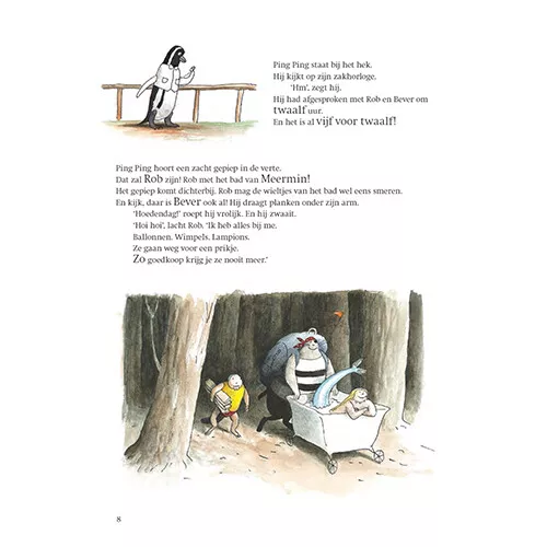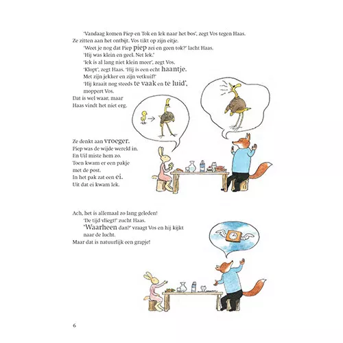 Het is druk in het bos. Tok, Piep en Iek komen op bezoek en iedereen maakt zich klaar voor een groot feest. Er zijn vlaggetjes en ballonnen, en er is taart en sap.