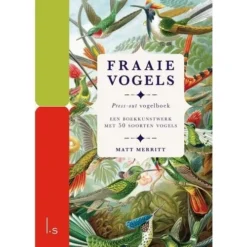 ‘Fraaie Vogels’ van Matt Merrit is een uniek boekkunstwerk. Het press-out boek bevat natuurgetrouwe prenten van 50 verschillende vogelsoorten die uit hun vorm gedrukt kunnen worden. Zo ontstaat een bontgekleurde waaier aan zangvogels, watervogels, roofvogels en nog veel meer.