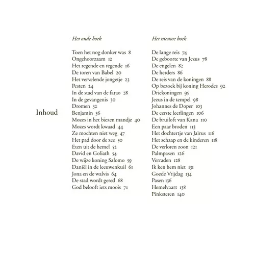 Tekst en illustraties vertellen de bijbel vanuit de belevingswereld van jonge kinderen, en laten hen op verassende wijze kennismaken met de verhalen die zo’n grote rol spelen in onze cultuur.