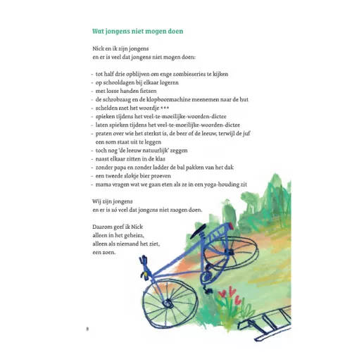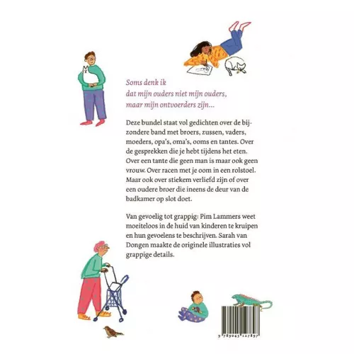 Van gevoelig tot grappig: Zilveren Griffel-winnaar Pim Lammers weet moeiteloos in de huid van kinderen te kruipen en hun gevoelens te beschrijven. Sarah van Dongen maakte er eigenzinnige illustraties bij vol humor.