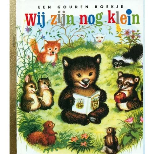 Wij zijn nog klein van Uitgeverij Rubinstein is een gouden boekje over allerlei jonge dieren. Allemaal vertellen ze iets over zichzelf. De leeuw wil de koning van de jungle worden, de kleine marmot is een slaapkop en de kleine wasbeer is een echte wasser. Weet jij wat het lammetje doet?