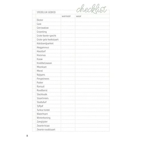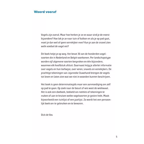 Het Vogeldoeboek maakt het mogelijk om je observaties en ervaringen te bewaren. Maak notities, leer over de vogels die je ziet en geniet van de gedetailleerde tekeningen van de meest voorkomende vogelsoorten in de Lage Landen.