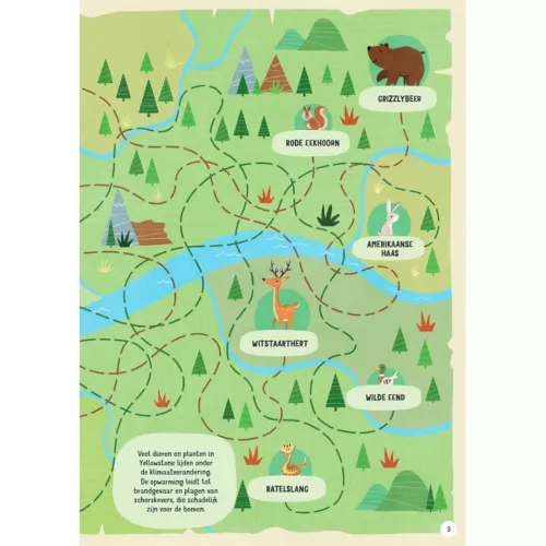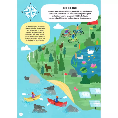 ‘Het grote groene doeboek’ van Maeve Binchy is een must voor nieuwsgierige kinderen die alles willen weten over onze veranderende planeet. In elk van de meer dan tachtig puzzels komt een onderwerp aan de orde dat met het milieu te maken heeft, zoals water besparen, recyclen en ontbossing. Help een bij de weg naar zijn nest terug te vinden, ga boodschappen doen bij de boer en repareer lekkende waterleidingen om water te besparen. Bij elke fraai geïllustreerde puzzel staan weetjes over onze aarde, de dieren die er leven en wat voor invloed de mensheid heeft. Doolhoven, zoek-de-verschillen, zoekplaten, geheugenspelletjes, quizjes en andere leuke milieuvriendelijke puzzels – gegarandeerd urenlang milieuvriendelijk vermaak!