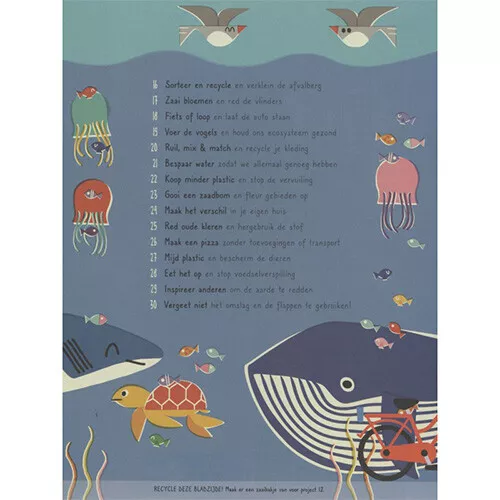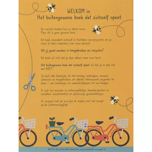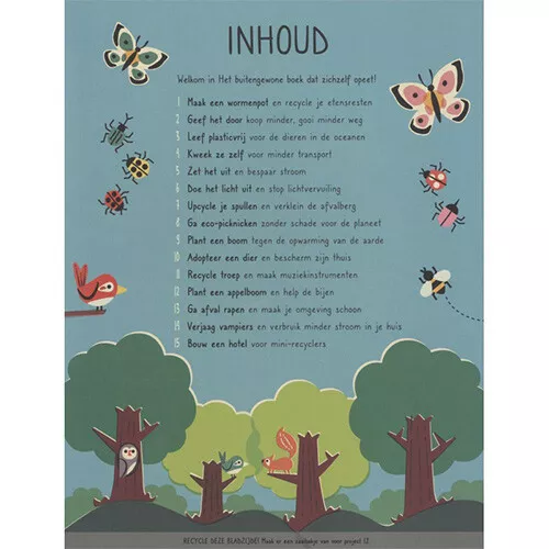 Elke bladzijde verandert in een project dat jonge kinderen helpt de aarde te redden: plasticvrije tasjes, insectenhotel-‘kamers’, appelzaaibakjes, upcycle-badges, receptkaarten, picknickuitnodigingen en nog veel meer.