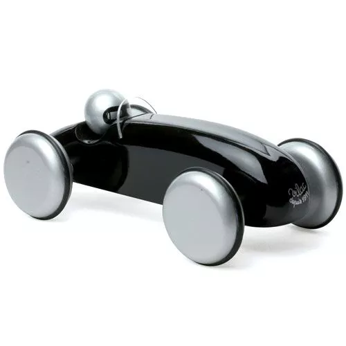 Een zwarte houten raceauto van het Franse merk Vilac. De Speedster is leuk om mee te spelen en tegelijkertijd een hippe eye-catcher voor op de speelkamer en kinderkamer.